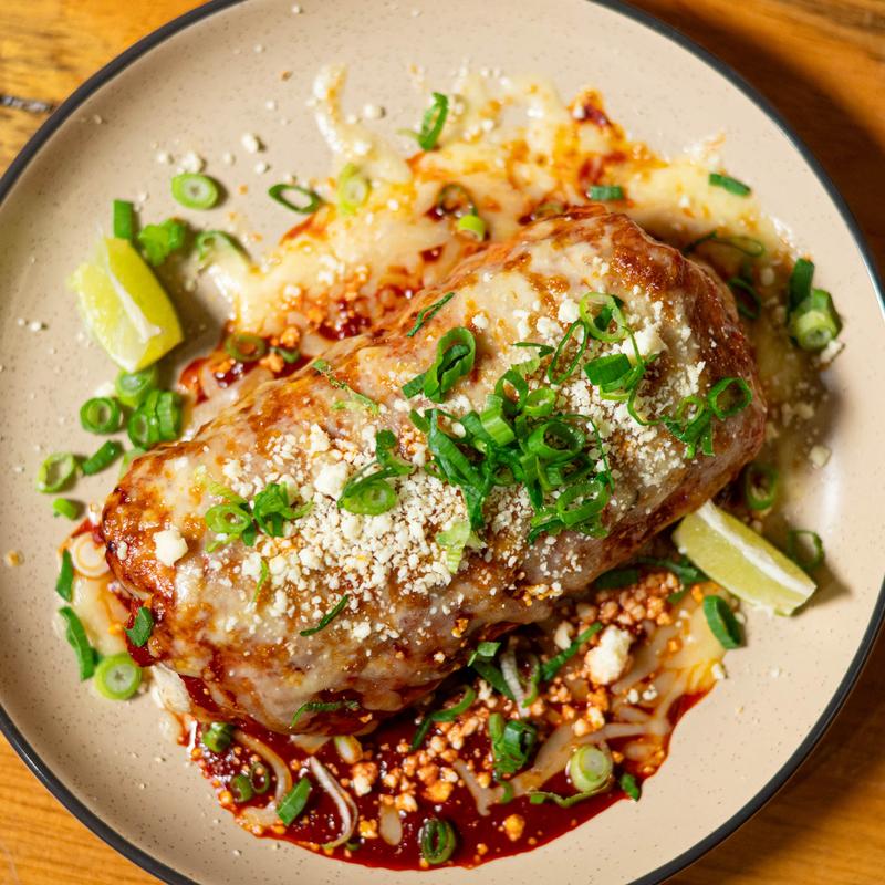 Two 3-oz burger patties, fried chile relleno, crispy onions, Monterey Jack cheese, Dilla sauce, house-made telera roll